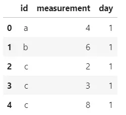df1 = pd.DataFrame({'id':id, 'measurement':measurement, 'day':day})