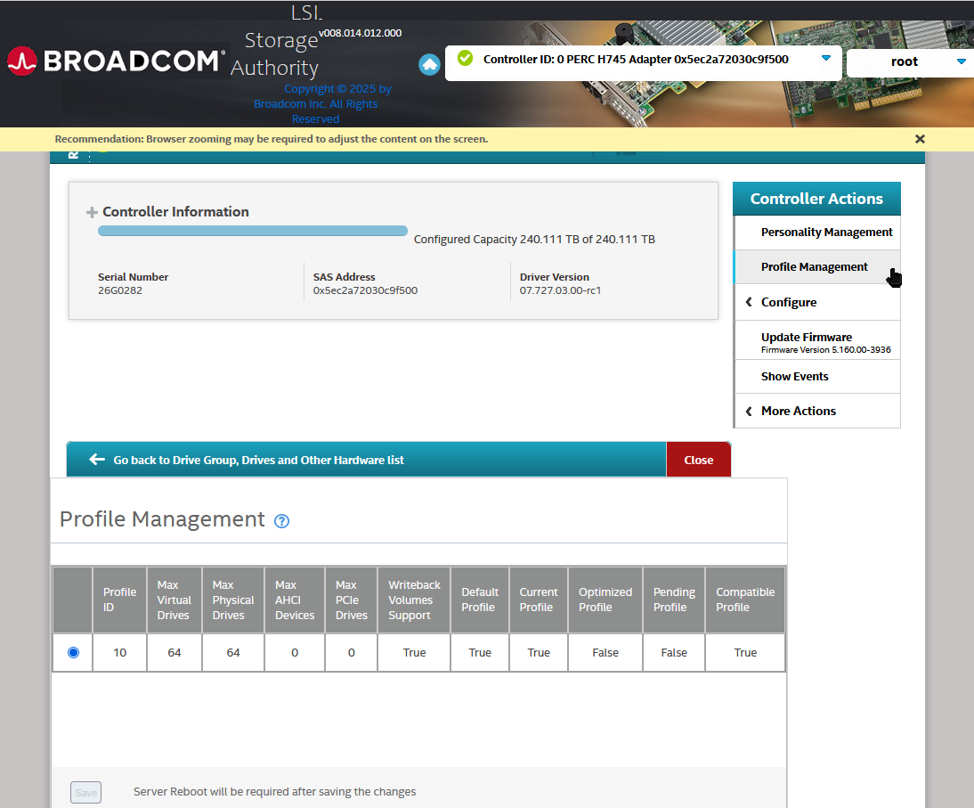 LSI 被Broadcom收购后 之后新款阵列卡已经改用LSI Storage Authority简称(LSA) ,已经非MSM(MegaRAID Storage Manager)(2) Event Log存储(JSON格式文本文件), TTY Log存储(工程版Debug信息,用于较详细检查问题)示例: (地址:192.168.3.111,密码:12345654321)(1) 可将RAID切换为