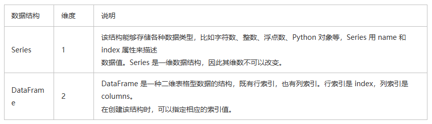 DataFrame 一个表格型的数据结构,既有行标签(index),又有列标签(columns),它也被称异构数据表,所谓异构,指的是表格中每列的数据类型可以不同,比如可以是字符串、整型或者浮点型等。