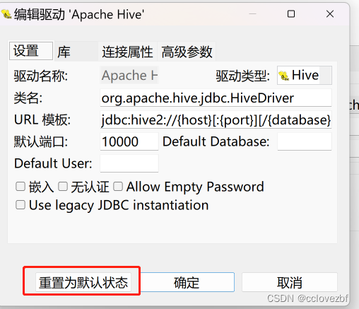jdbc:hive2://{host}[:{port}][/{database}]/;principal=hive/{host}@CDP.COM;AuthMech=1;KrbRealm=CDH.COM;KrbHostFQDN={host};KrbServiceName=hive;KrbAuthType=2