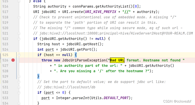 首先我们找到源码。怎么找源码?这个是连接hive报错的 大概率就是hiveConnection 和hiveDriver里解析hive url 和hive -d xxx=xxx这种时候出错了。详细过程不叙述了