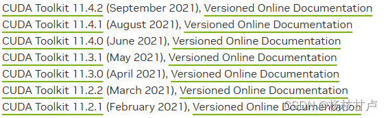 放一张版本对应图,我下载的是cuda11.3版本,所以pytorch版本对应最好就是1.8.0或1.9.0或1.10.0。